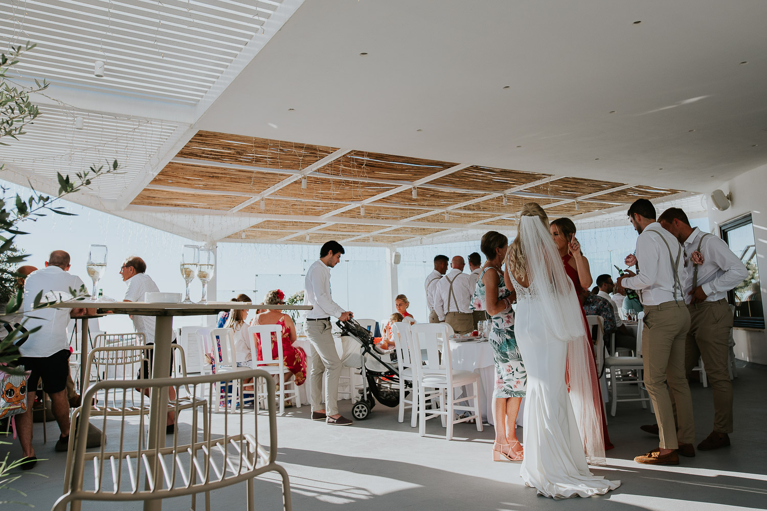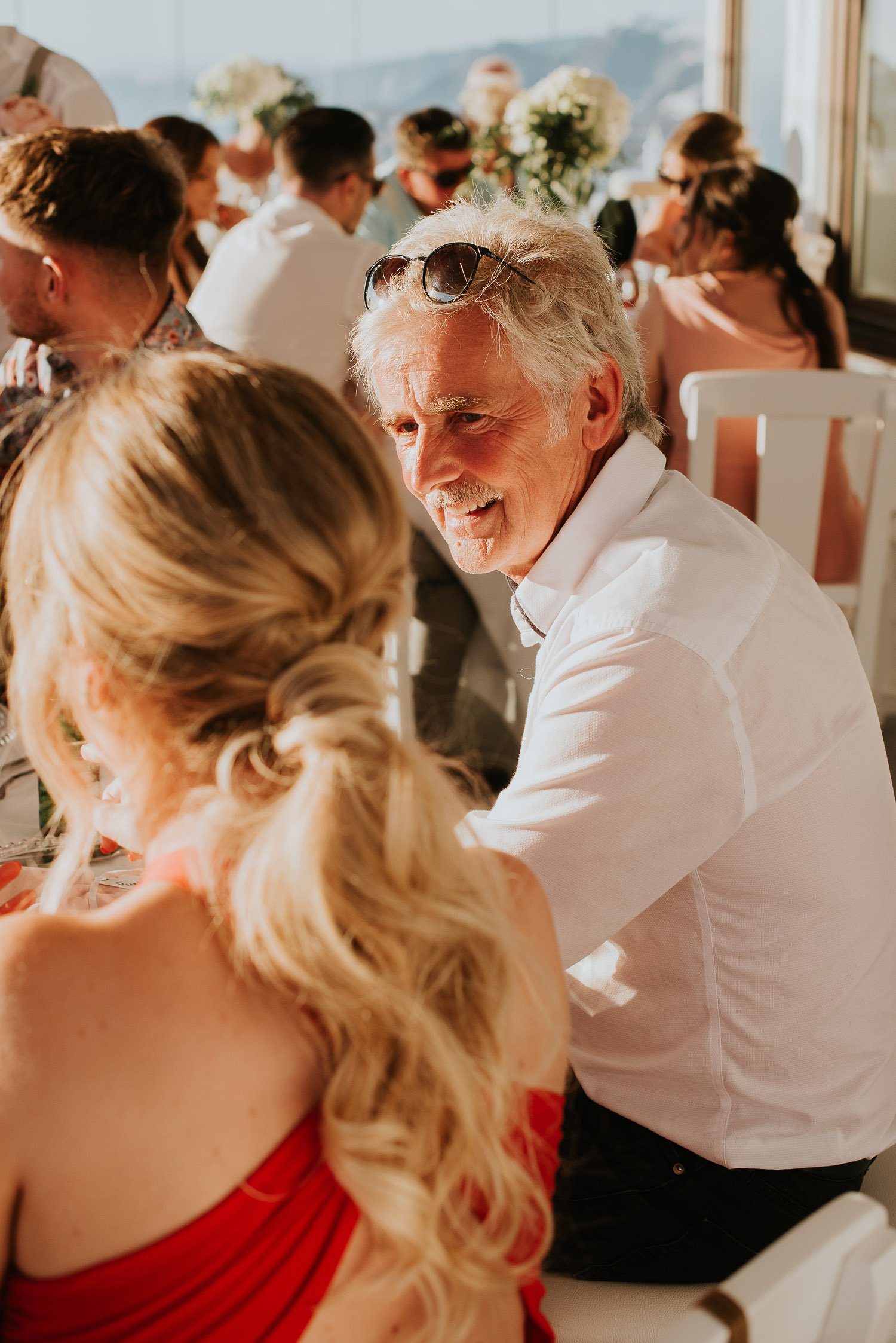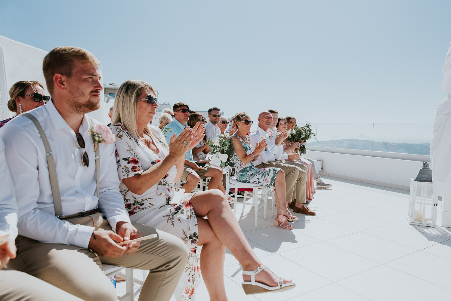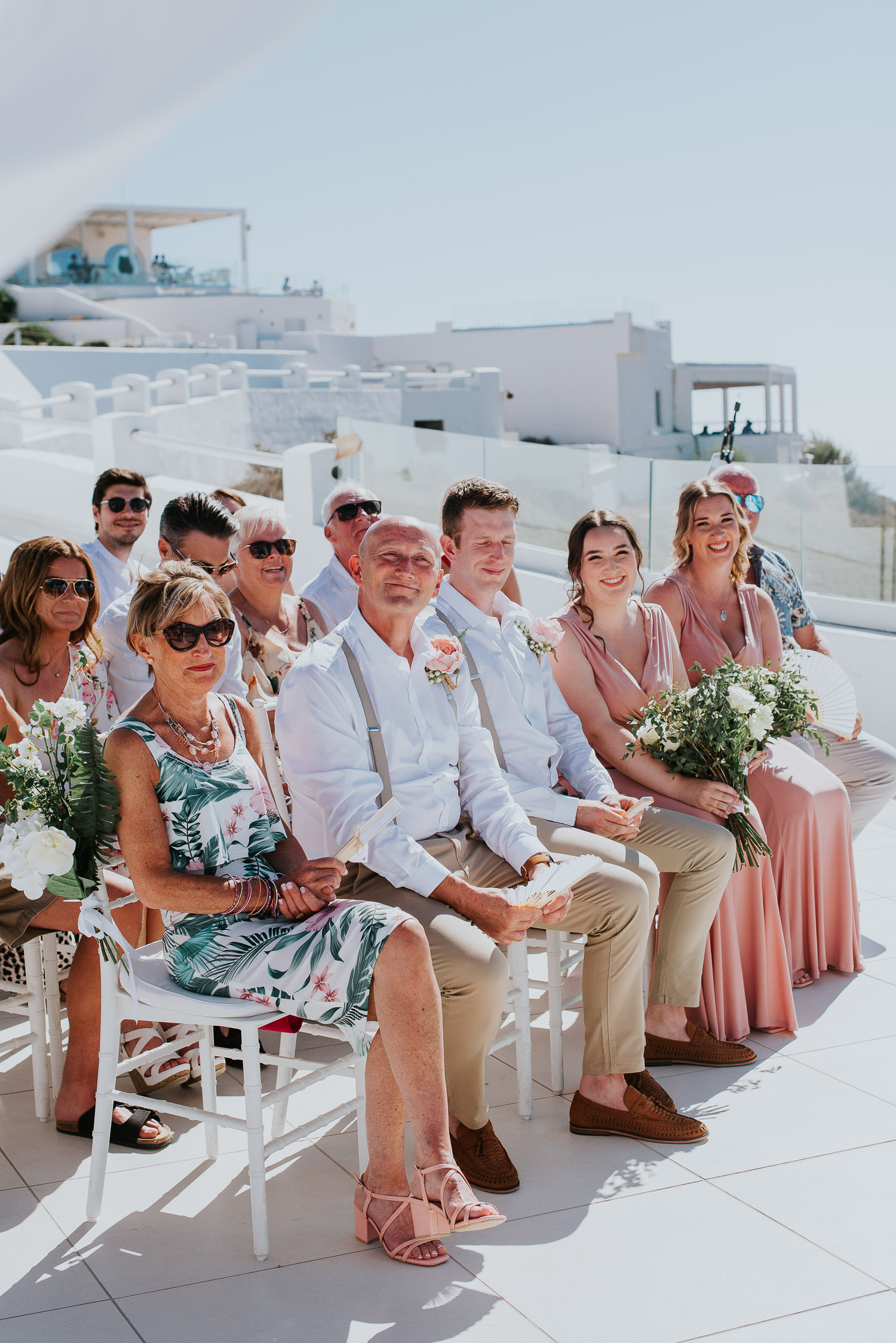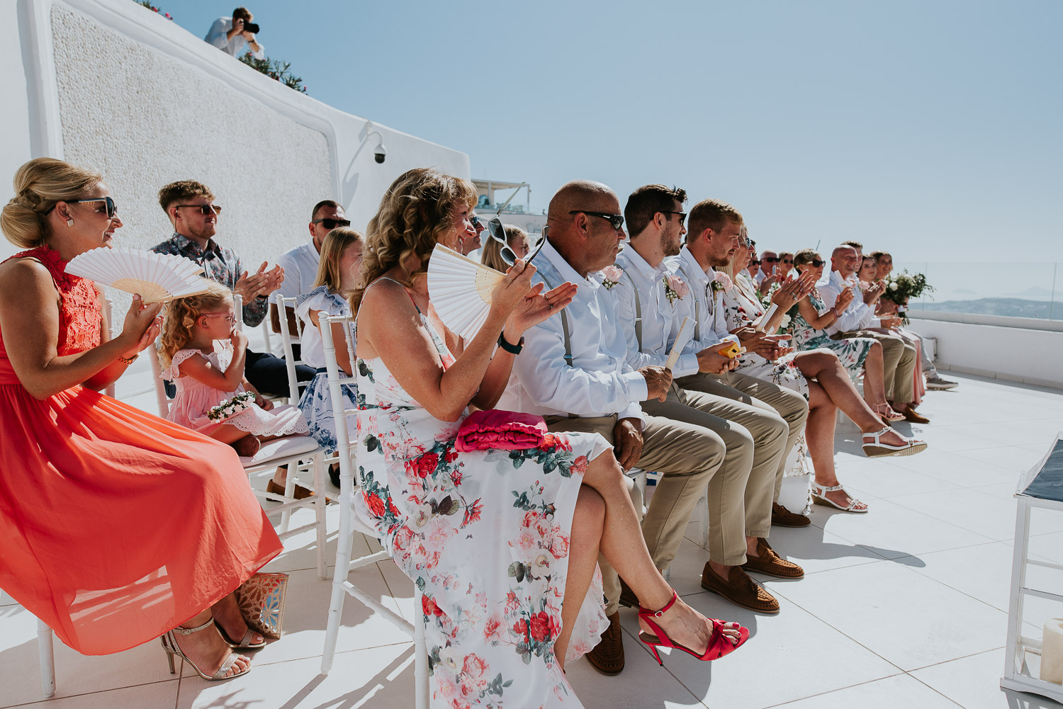 The arrival to Pyrgos restaurant and the Panorama hall was cheered by the wedding guests as Rachel and Jack walked in. We found guests freshening up in the shade of the terrace eating gelatos from one of our favourites on the island – Solo Gelato.