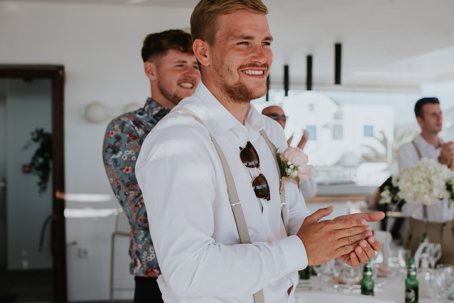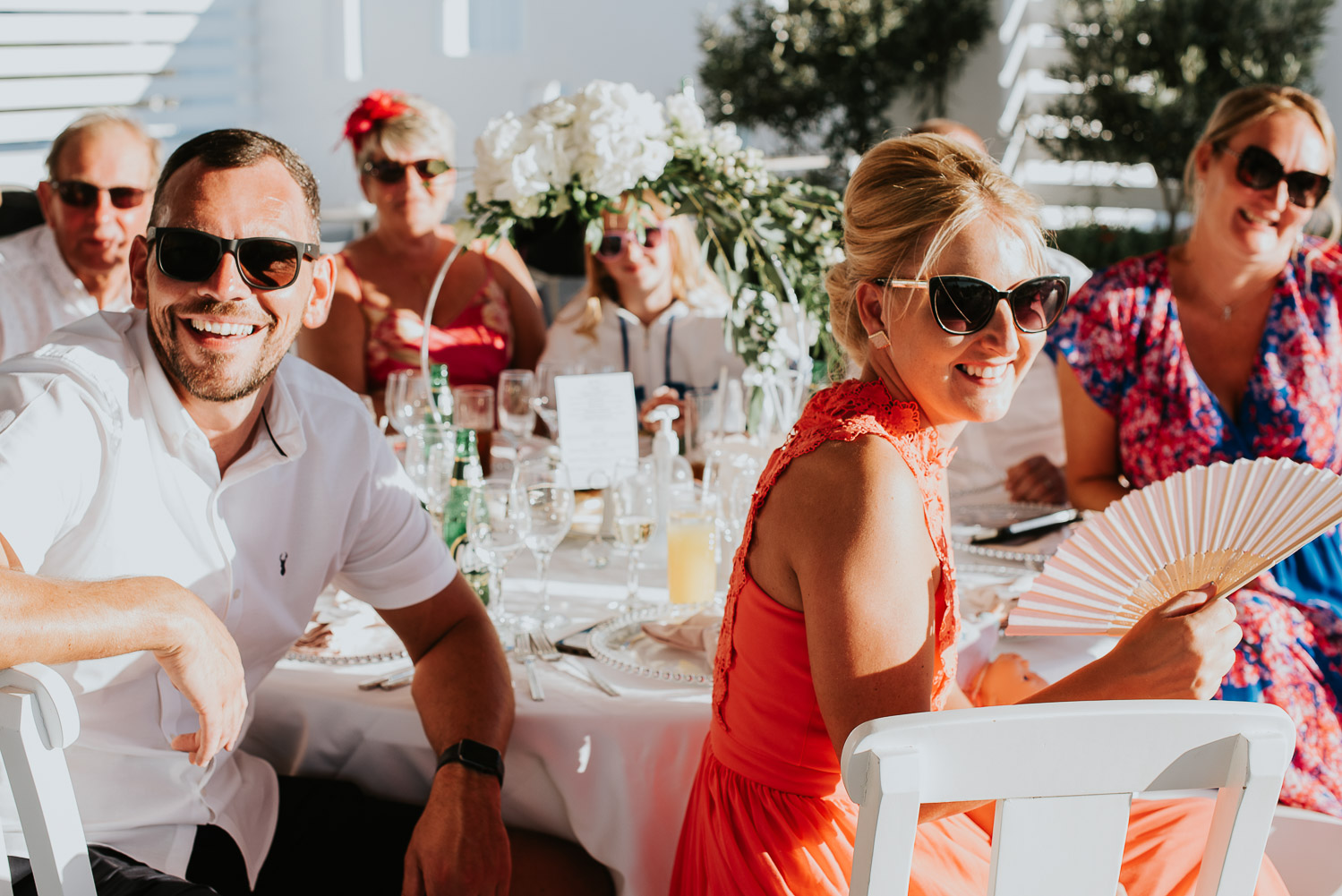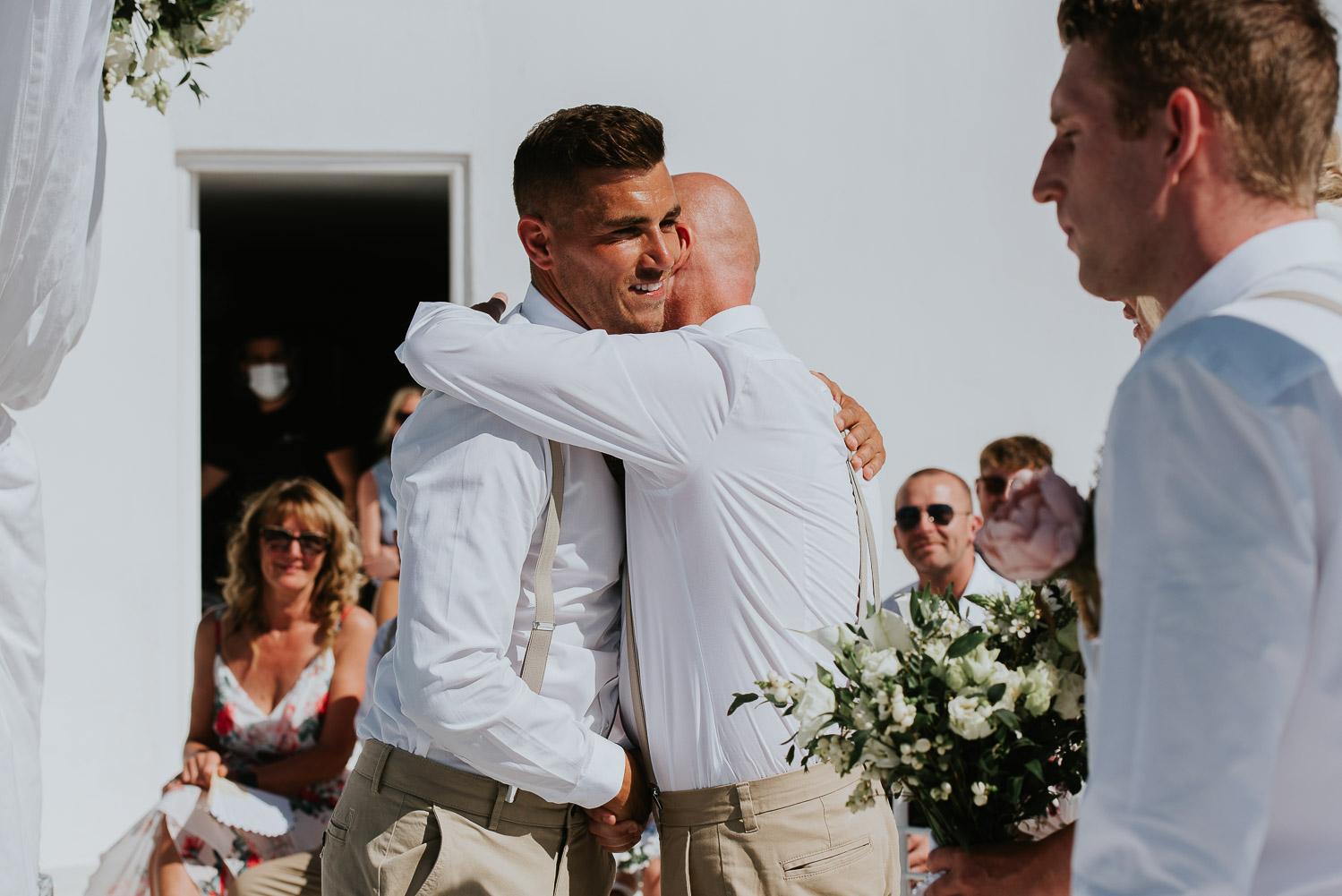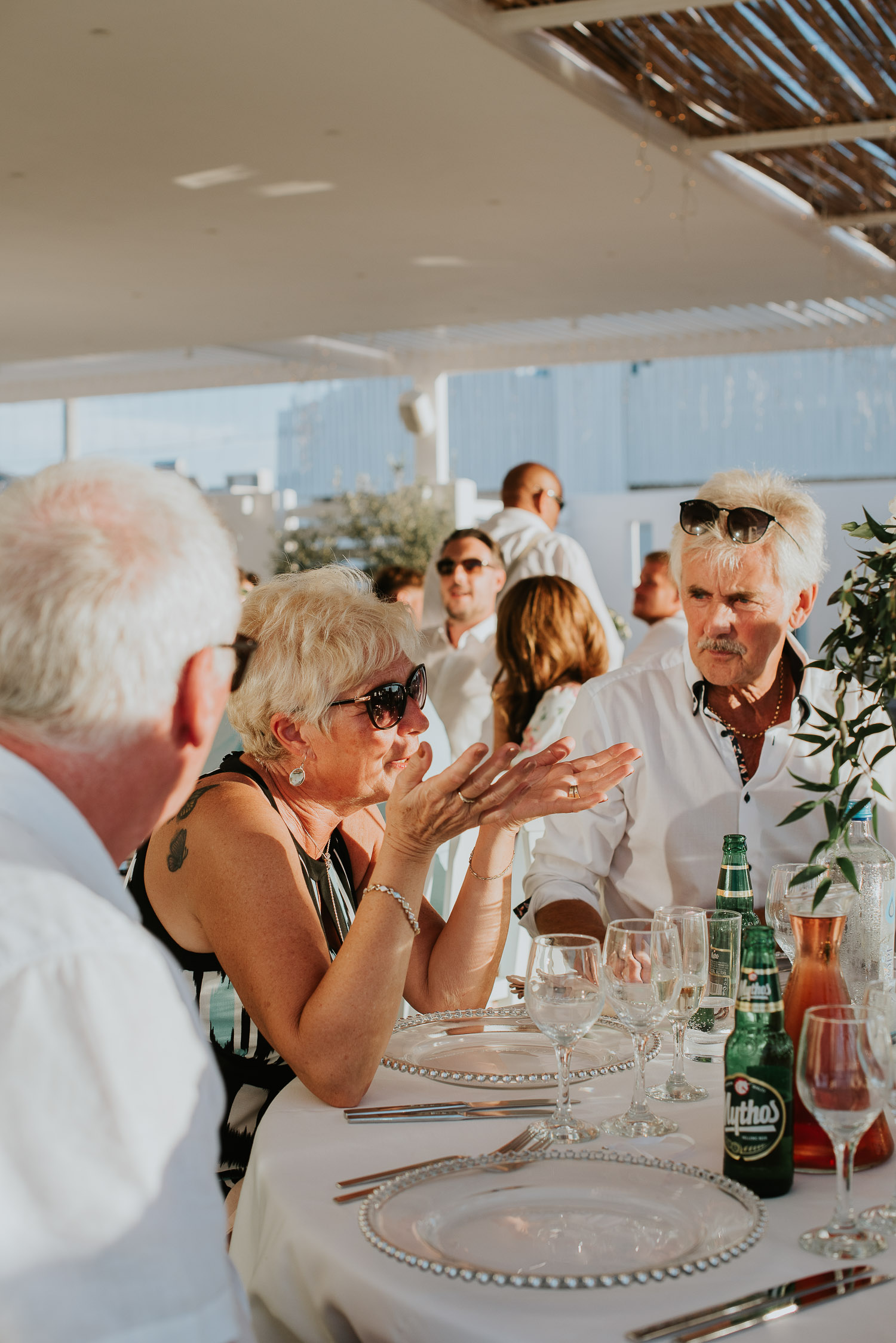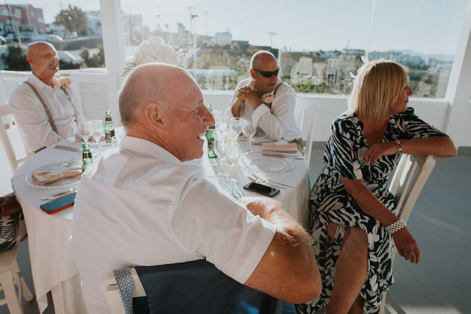 The arrival to Pyrgos restaurant and the Panorama hall was cheered by the wedding guests as Rachel and Jack walked in. We found guests freshening up in the shade of the terrace eating gelatos from one of our favourites on the island – Solo Gelato.